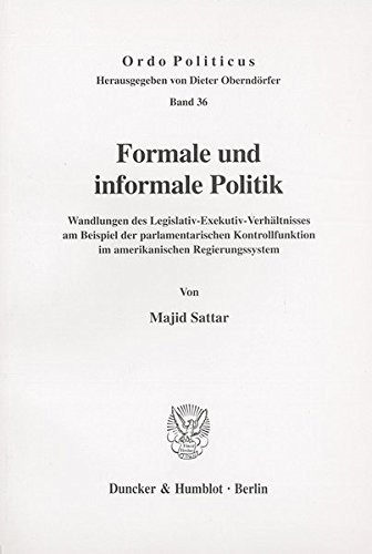 Formale und informale Politik. Wandlungen des Legislativ-Exekutiv-Verhältnisses am Beispiel der parlamentarischen Kontrollfunktion im amerikanischen Regierungssystem. Mit Tab. (Ordo Politicus; OPO 36) PDF pdf. Read online Formale und informale Politik. Wandlungen des Legislativ-Exekutiv-Verhältnisses am Beispiel der parlamentarischen Kontrollfunktion im amerikanischen Regierungssystem. Mit Tab. (Ordo Politicus; OPO 36) PDF ePub pdf or download for read offline if you looking for where to download Formale und informale Politik. Wandlungen des Legislativ-Exekutiv-Verhältnisses am Beispiel der parlamentarischen Kontrollfunktion im amerikanischen Regierungssystem. Mit Tab. (Ordo Politicus; OPO 36) PDF Online or read online i ...