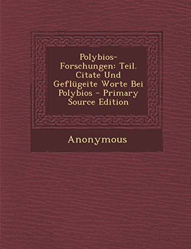 And read the Polybios-Forschungen: Teil. Citate Und Geflugeite Worte Bei Polybios - Primary Source Edition PDF Download book for free!