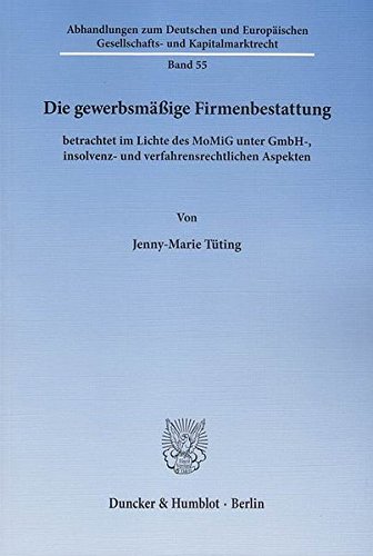 Die gewerbsmäßige Firmenbestattung: betrachtet im Lichte des MoMiG unter GmbH-, insolvenz- und verfahrensrechtlichen Aspekten. (Abhandlungen zum ... Gesellschafts- und Kapitalmarktrecht) PDF Online